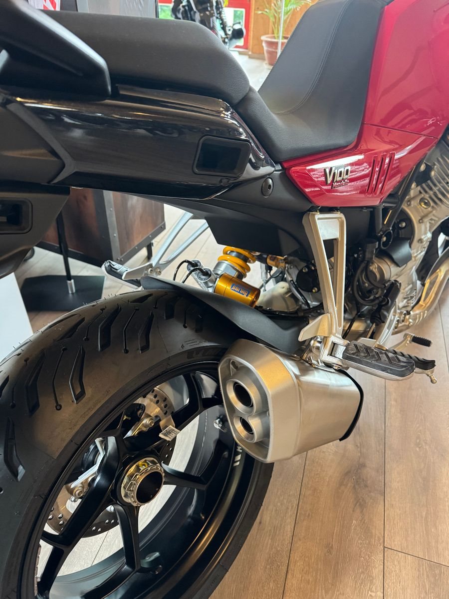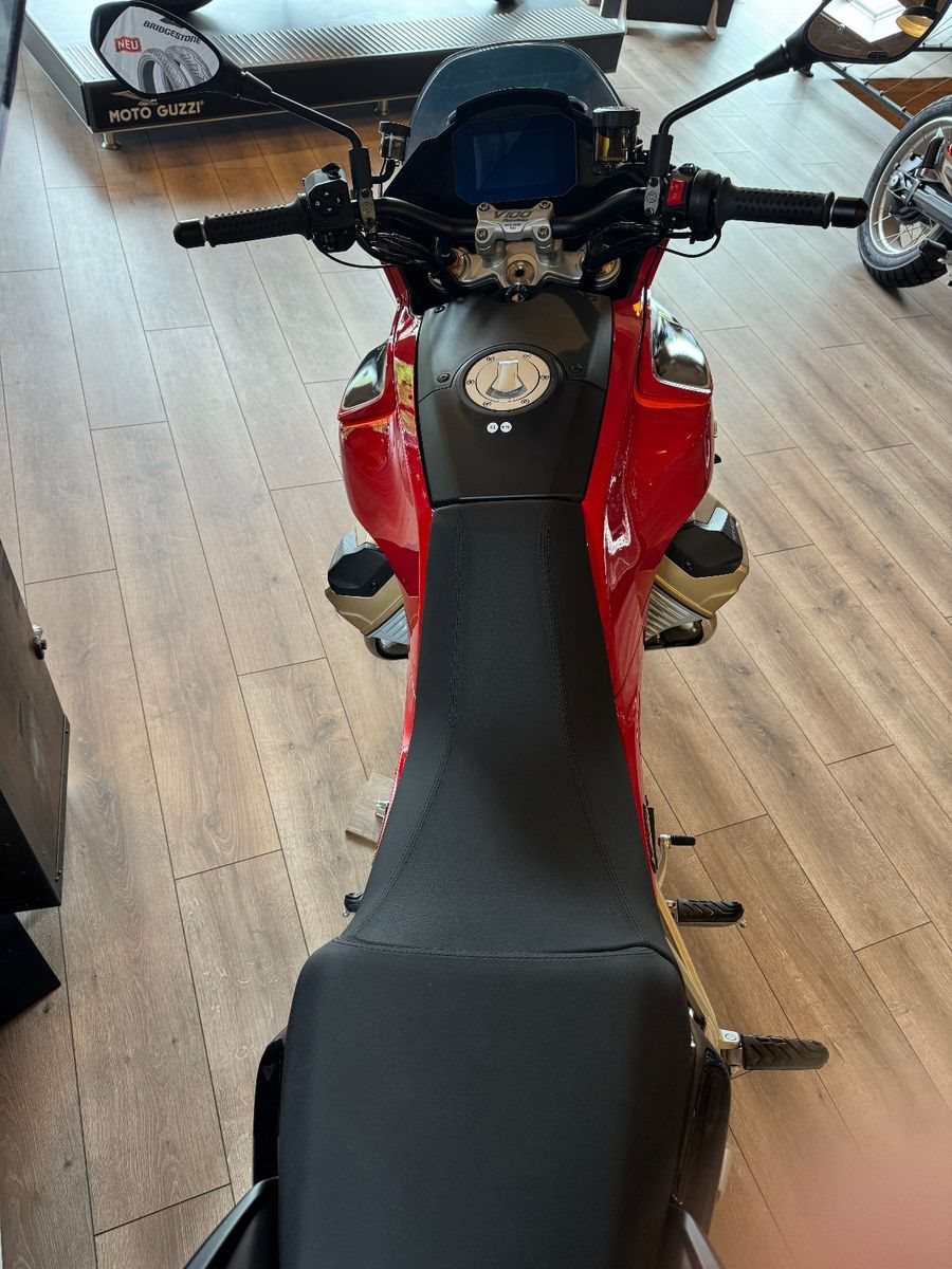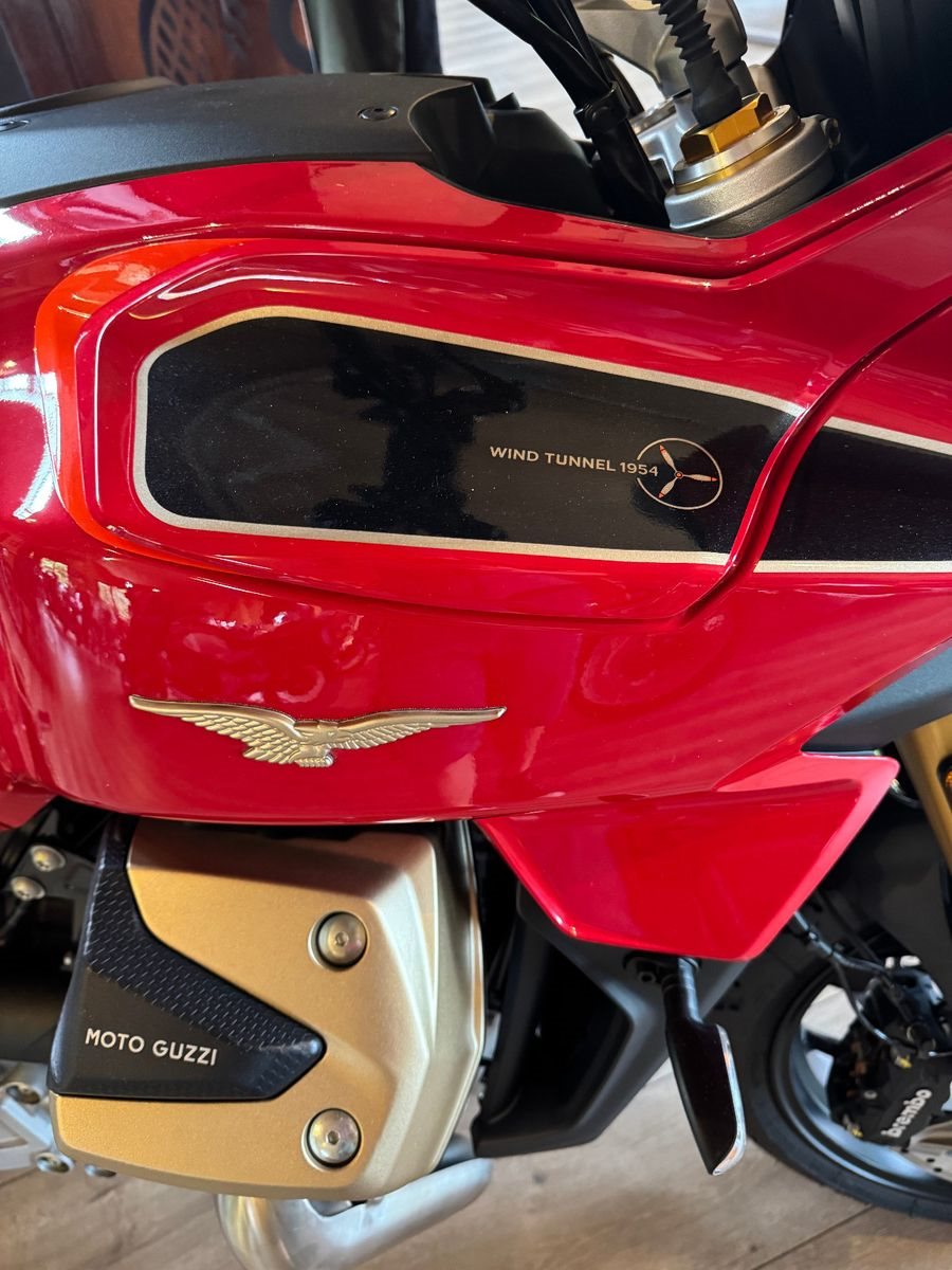 Der V100 Mandello Windkanal ist das exklusivste Modell der V100-Familie. Sie feiert das 70-jährige Bestehen des historischen Windkanals von Mandello del Lario und ist auch eine Hommage an die Pionierrolle von Moto Guzzi bei der Anwendung der Aerodynamik auf Motorräder.
