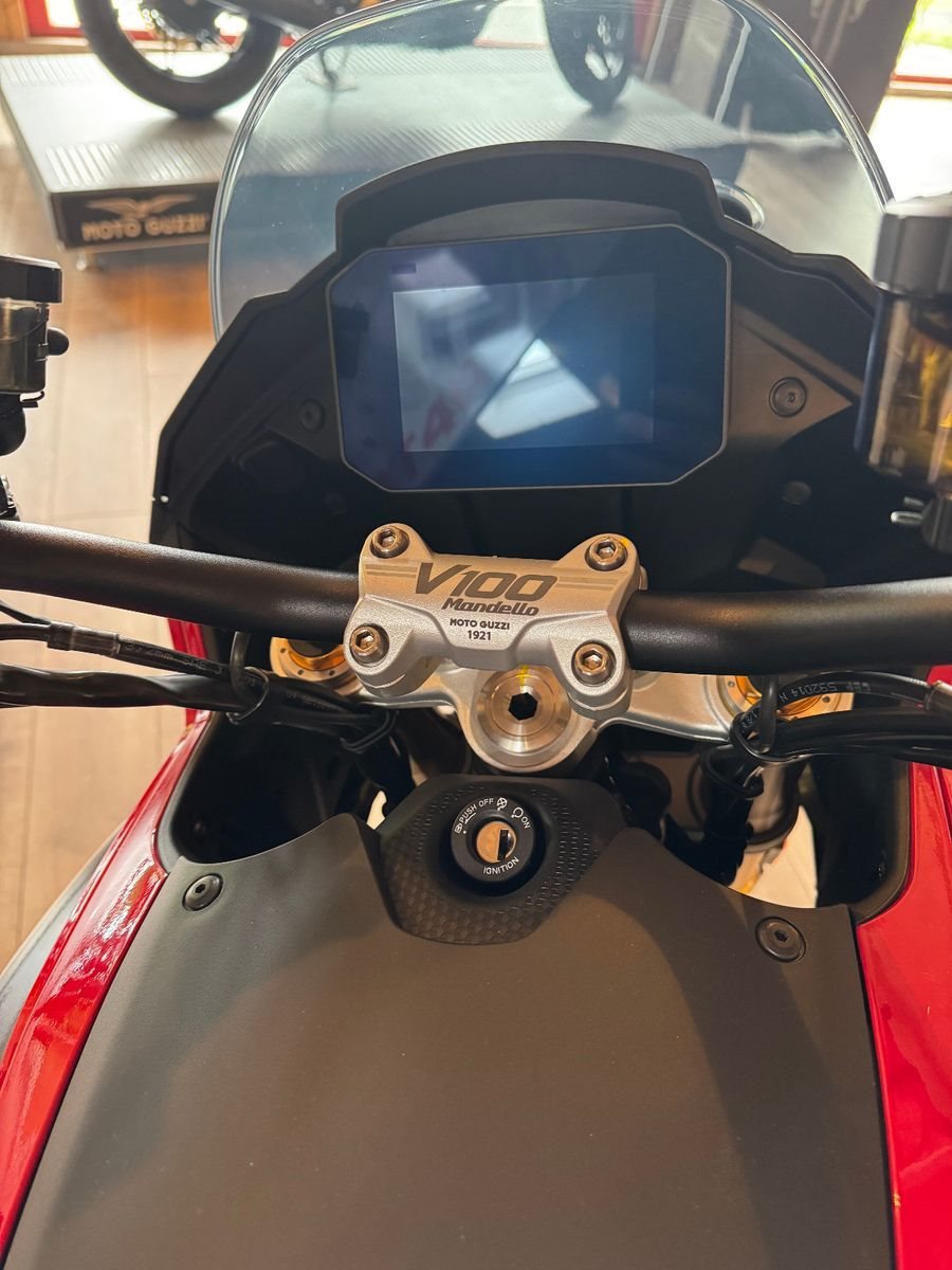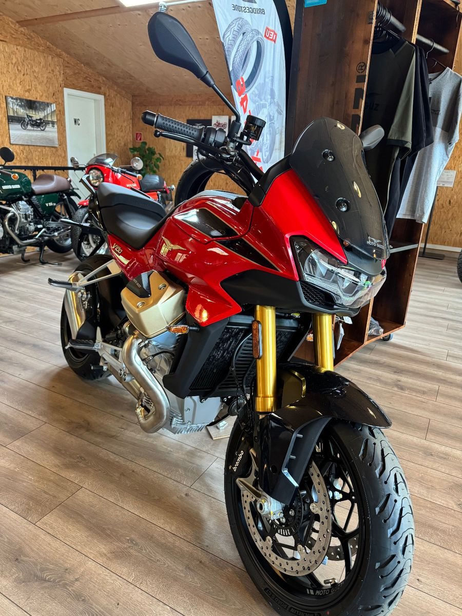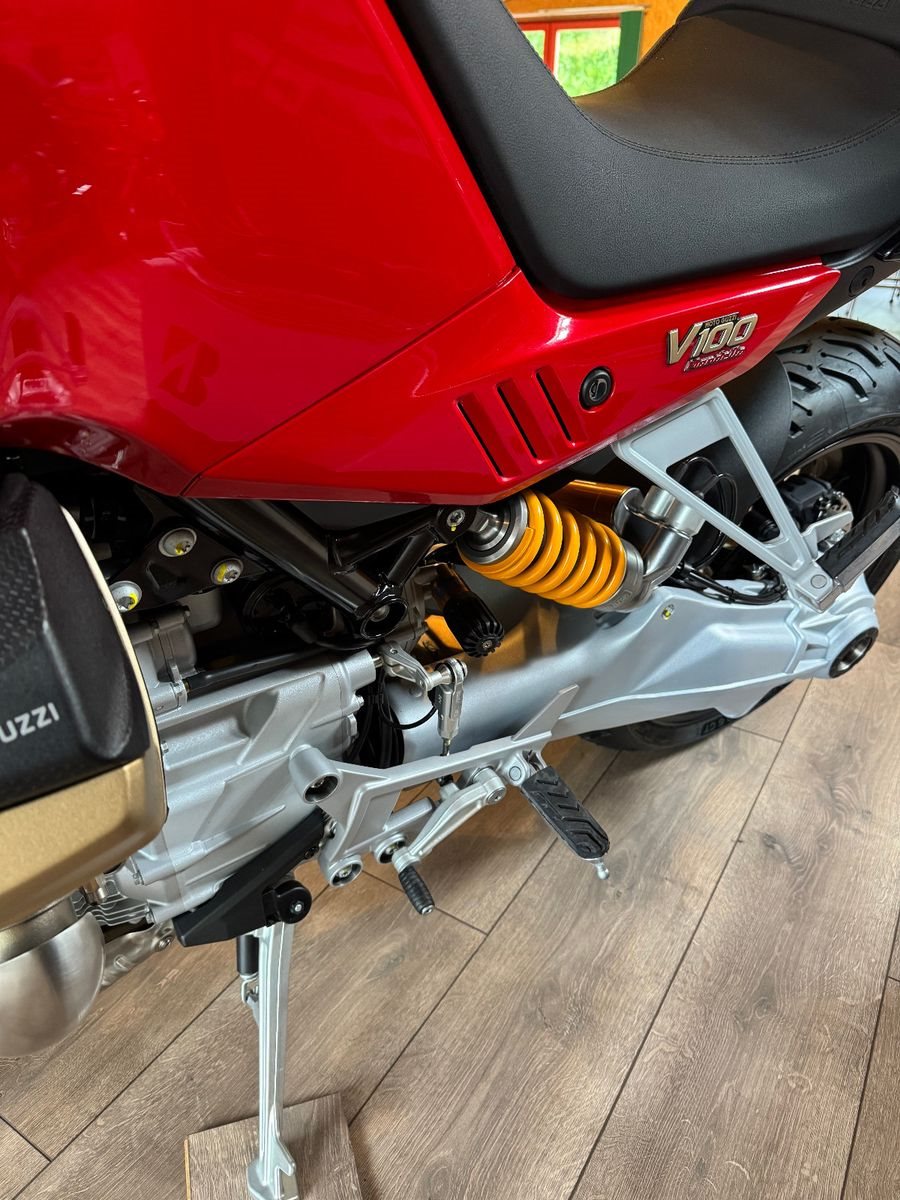 Der V100 Mandello Windkanal ist das exklusivste Modell der V100-Familie. Sie feiert das 70-jährige Bestehen des historischen Windkanals von Mandello del Lario und ist auch eine Hommage an die Pionierrolle von Moto Guzzi bei der Anwendung der Aerodynamik auf Motorräder.