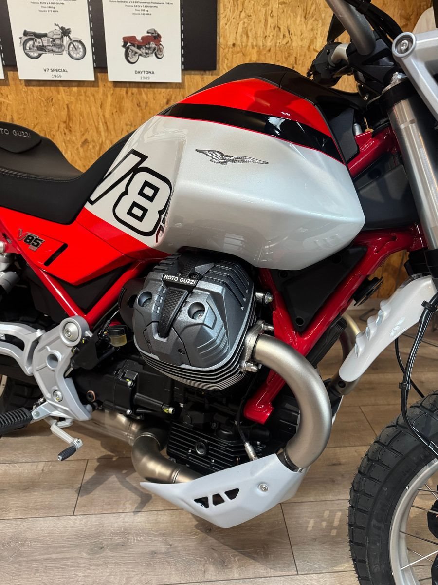 Moto Guzzi V85 TT E5+ in Rosso Fuji ist da und ab sofort bei uns Verfügbar.