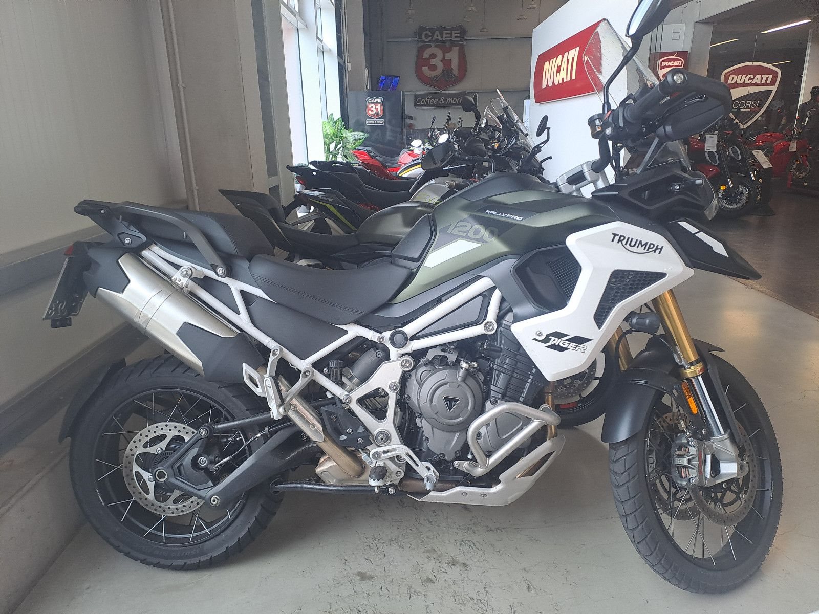 Angeboten wir hier eine neue Triumph Tiger 1200 Rally Pro / PSBGB in der Farbe Matt Khaki Green Modell 2025 von Hertrampf-Racing Emsbüren!