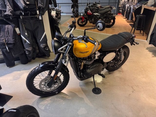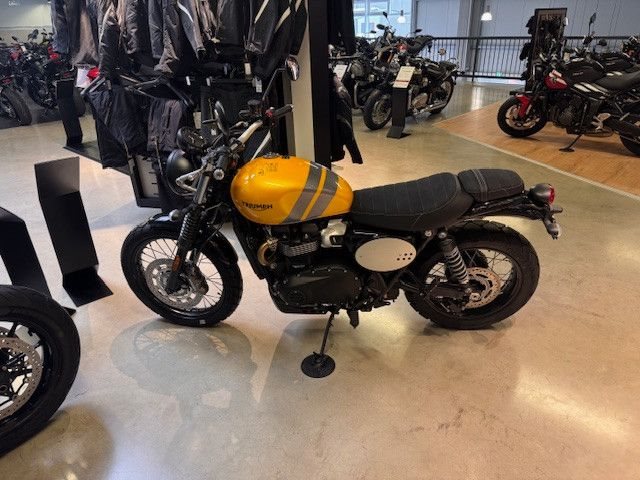 Angeboten wird eine neue Triumph Scrambler 900 in der Farbe gelb, als Euro 5 Modell, ohne Zulassung, als Neufahrzeug!